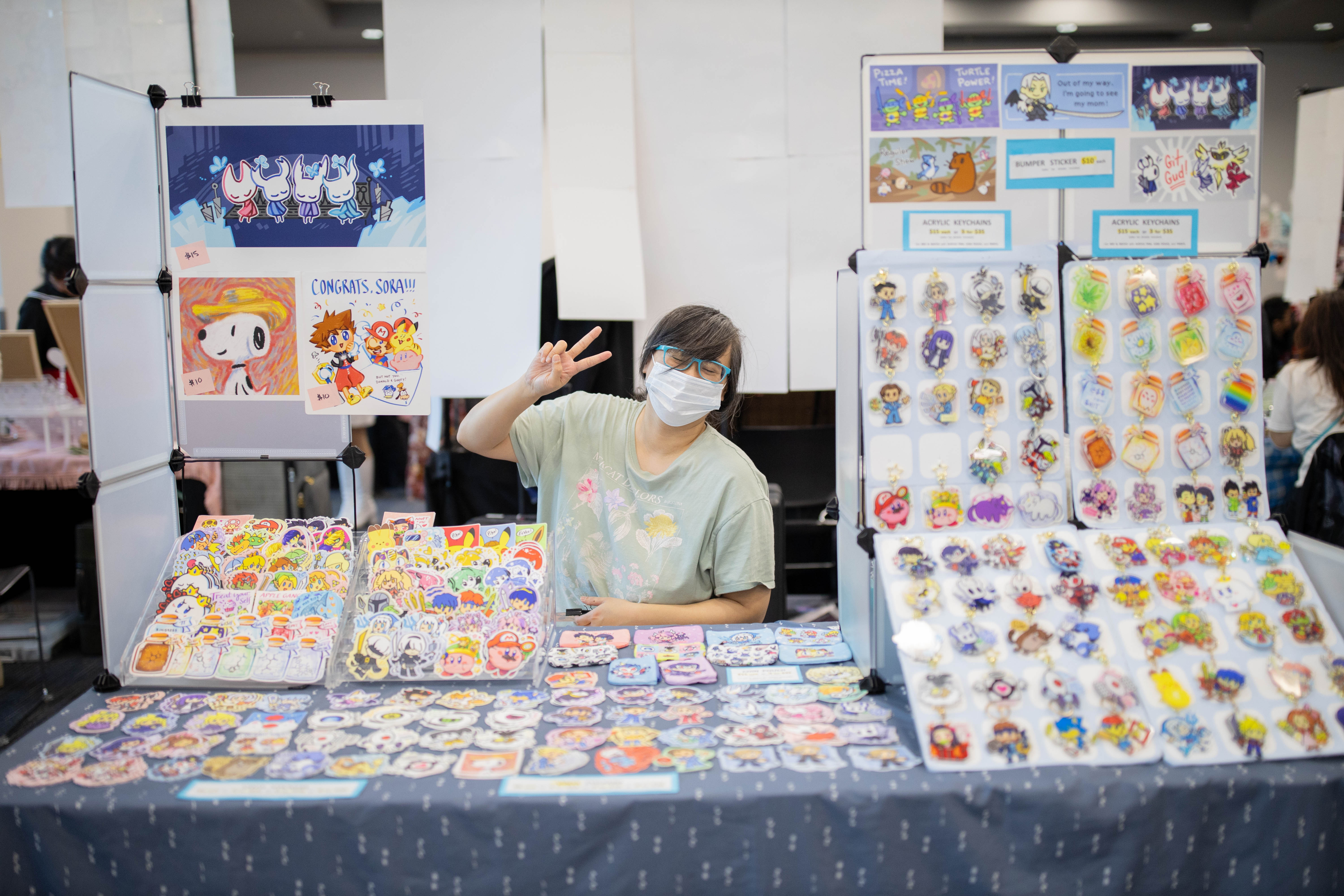 At ZotCon, there's a whole world of creativity just down the hall. From posters to stickers to maybe even clothes, there's merch galore to be found at our artist alley.